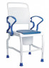 Нескладное стальное кресло-туалет, регулируемое по высоте и оснащенное откидными подлокотниками. Съемное ведро, стульчак, крышка изготовлены из гигиенического пластика, который легко чистить и мыть. Ножки кресла-туалеты имеют резиновые наконечники, которые обеспечивают дополнительную безопасность.
