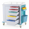 - Опоры поворотные, самоориентирующиеся колеса, с ободом из полипропилена и шинкой из серого полиуретана, не оставляют следов на полу, все оснащены тормозом